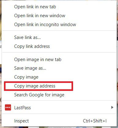 2. Right-click on the photo and copy the URL of the image.