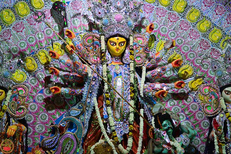 Durga Puja is celebrated every year in the Hindu month of Ashwin (September-October) and celebrates Prince Rama’s invocation of the goddess before going to war with the demon king Ravana.