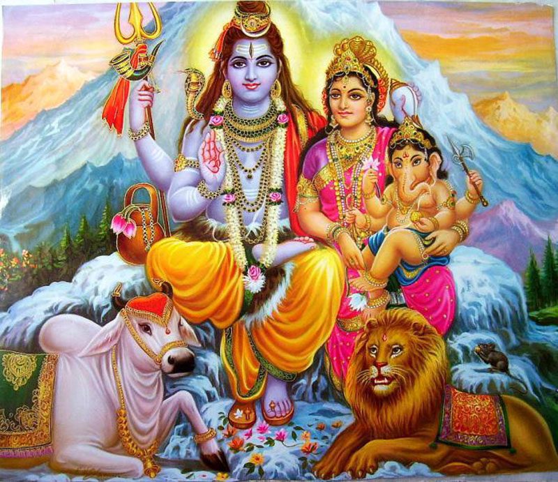 2. Saguna: In the Saguna state Shiva is the whole of the universe and his “Ansh” (fraction) is present in the tree, the insect, the animal, male, female, and the whole creation. In this state, though all forms arise out of him yet, no form can describe him.