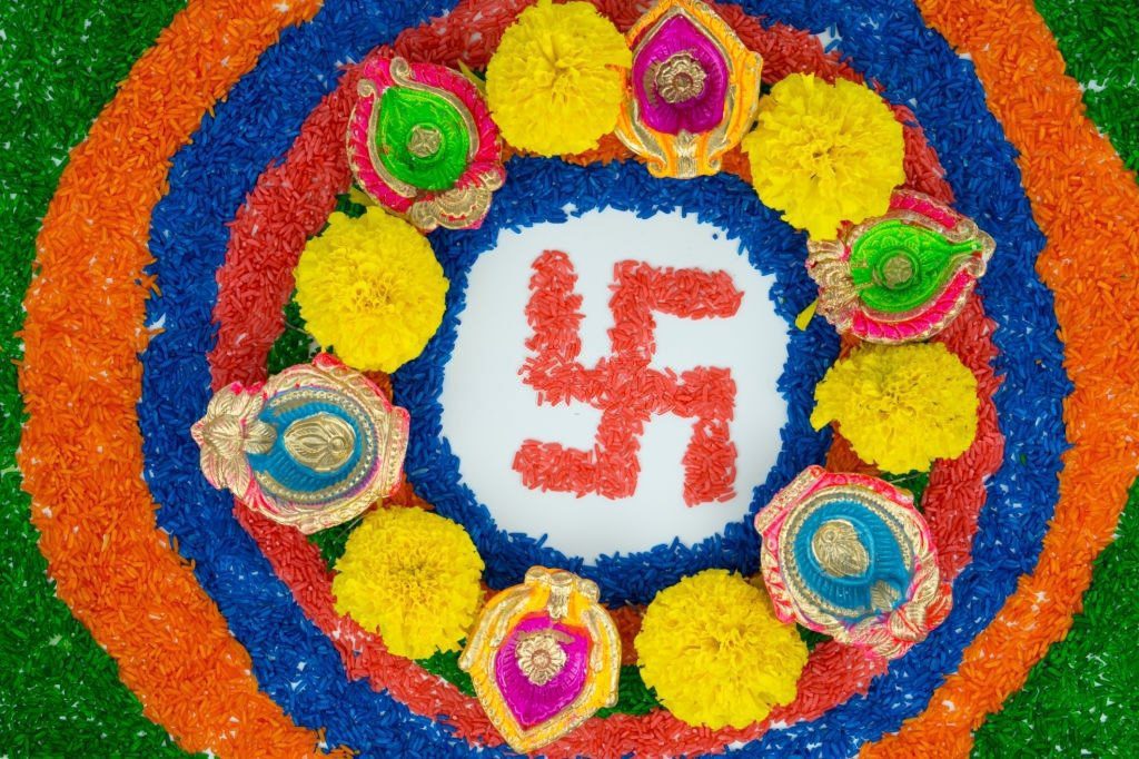 The Swastika always continued as a symbol of worship for Hindus, Buddhists, and Jains. It can be seen apparently everywhere in parts of the Indian subcontinent – from temple entrances to the front of taxis – and plays an important role in ceremonies and festivals. During Diwali – the Hindu festival of lights – the swastika is drawn with colored sand, or rangoli, and depicted with lanterns to celebrate the victory of light over darkness and good over evil.
