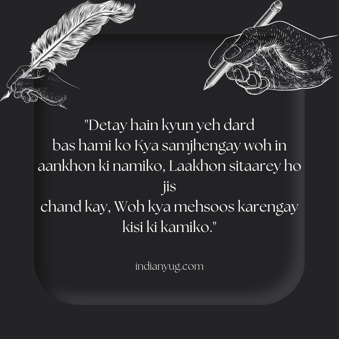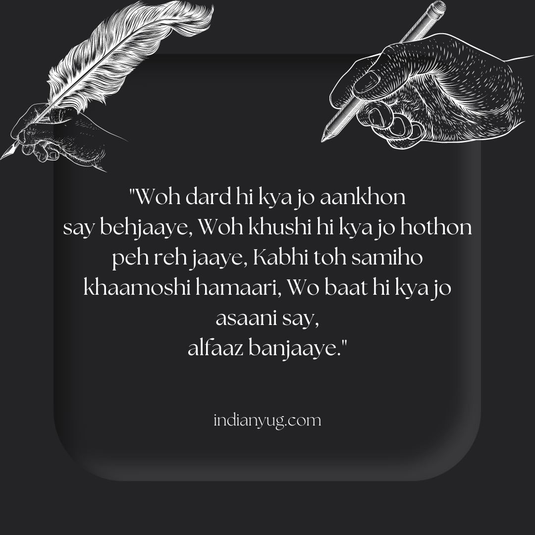 From the joy and ecstasy of young love to the pain and sorrow of loss and separation, Urdu poetry captures the full range of human emotions and experiences in a way that is both timeless and universal.